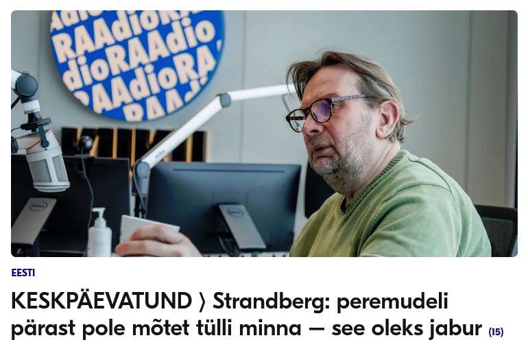 “«Ma ei usu, et sellest tülist Eesti kodusõda tõuseks. Kuid tüli ja tähelepanu hajumist on niigi palju kõikvõimalikes küsimustes. Peremudeli küsimus on viimane asi, mille pärast tasuks tülli minna. See oleks üksjagu jabur,» rõhutas Strandberg.”