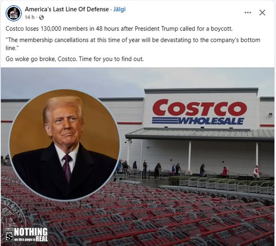 “Costco kaotas 48 tunniga 130 000 liiget pärast seda, kui president Trump kutsus ettevõtet üles boikoteerima.
