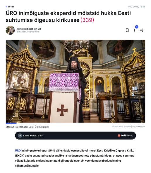 Riigikogu saadik ja traditsionalist Varro Vooglaid kirjutab sotsiaalmeedias sellest, et ÜRO inimõiguste spetsialistid mõistsid hukka Eesti suhtumise õigeusu kirikusse.