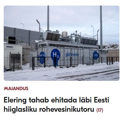 Postimees kirjutab: “Elering taotleb valitsuselt Soomest läbi Eesti Saksamaale viiva vesinikutoru ehituse eriplaneeringu alustamist. Praegu on kaalumisel kaks koridori, üks viib Harjumaalt üle Läänemaa Pärnumaale ja teine üle Raplamaa. Millised krundid võiks toru alla jääda, pole täpselt teada, sest planeeringu ala on praegu väga lai.