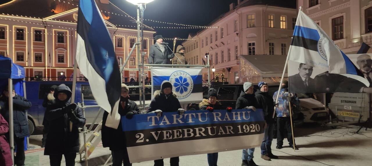 Riigikogu liikme, ajaloolase Anti Poolametsa kõne Tartu rahulepingu sõlmimise aastapäevale pühendatud tõrvikurongkäigu järgsel kõnekoosolekul.
