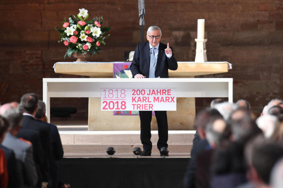 European Commission President Jean-Claude Juncker speaks on May 4, 2018 at the Basilica of Constantine in Trier, southwestern Germany, the birthplace of Karl Marx, during a ceremony ahead of the opening of major exhibitions on the revolutionary thinker. On May 5, 2018, is the 200th anniversary of Marx's birth. / AFP PHOTO / Patrik STOLLARZ
