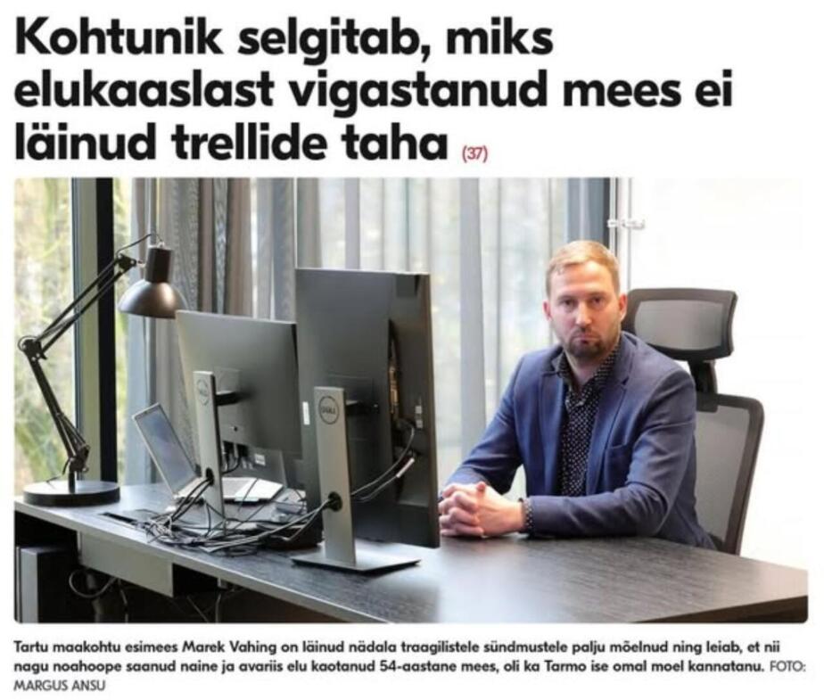 Tartu Postimees, 3. november: „Miks teenis Tarmo septembris noaga löömise eest tingimisi karistuse, miks ei olnud selline tegu väärt trellide taha saatmist? Eestis praktiseeritakse taastavat õigust, selgitas kohtunik Marek Vahing.