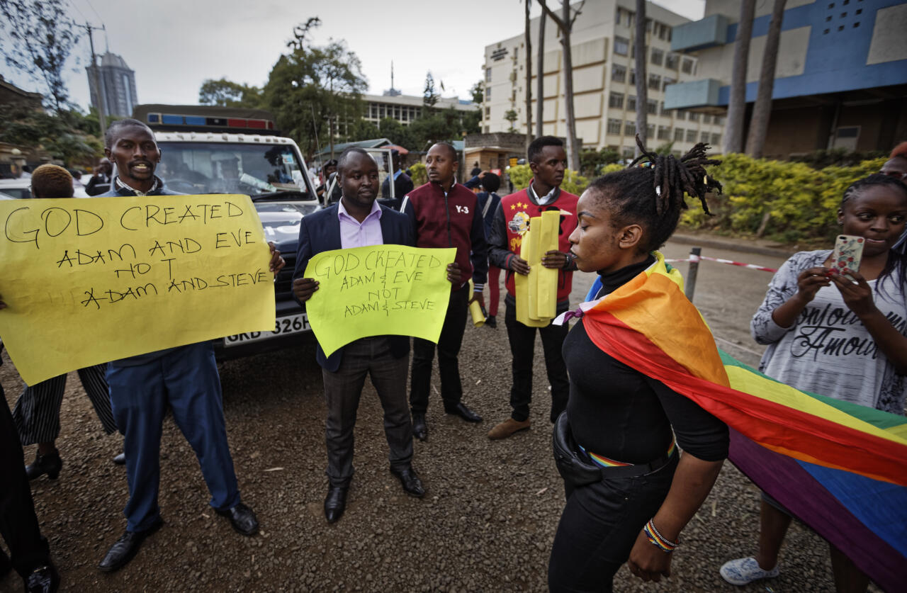 Homokonflikt Keenias: mehe plakat ütleb, et Jumal lõi Aadama ja Eeva, mitte Aadama ja Steve. Liberaalne Lääs ekspordib oma luulusid ka Kolmandasse maailma.