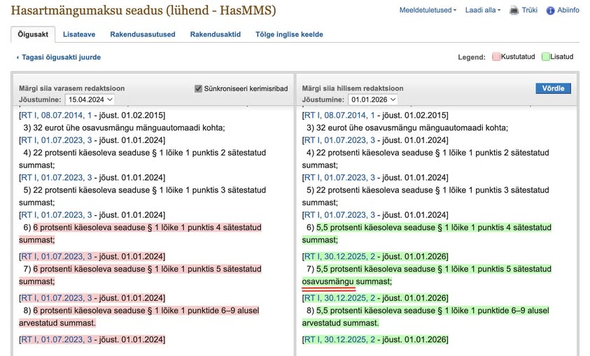 Oluline on ka see, et 2027. aasta ja järgnevates seaduseredaktsioonides seda kurikuulsat sõna „osavusmäng“ enam ei esine. Just see ajaliselt kitsas kehtivusaeg võimaldas luua lühiajalise, kuid rahaliselt väga suure mõjuga maksuerandi, mille hinnanguline maksumus on 2–2,5 miljonit eurot.