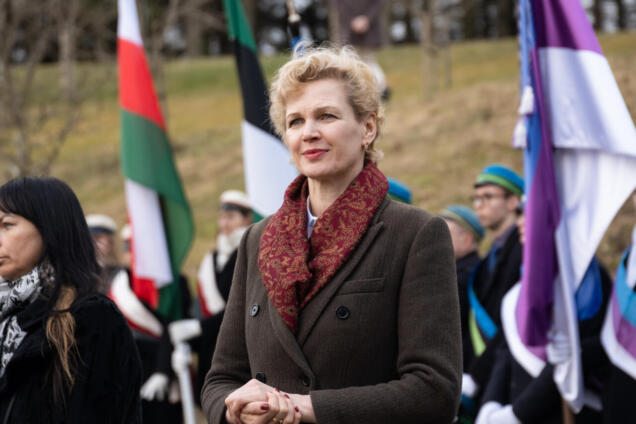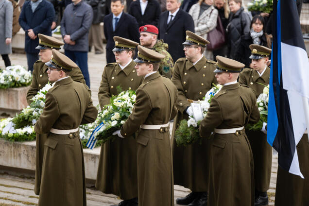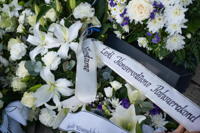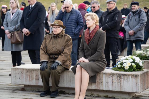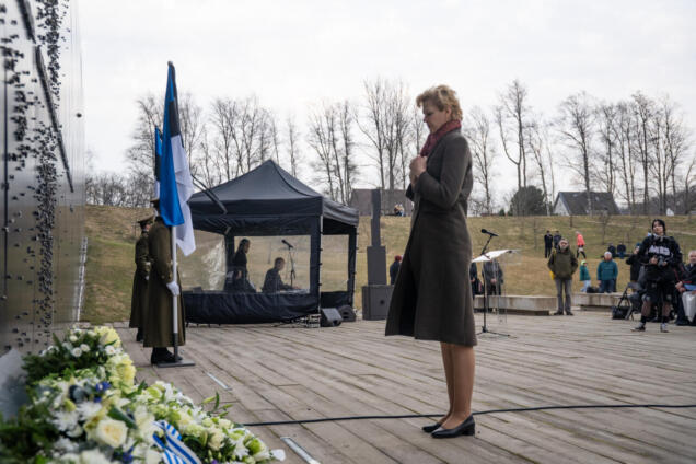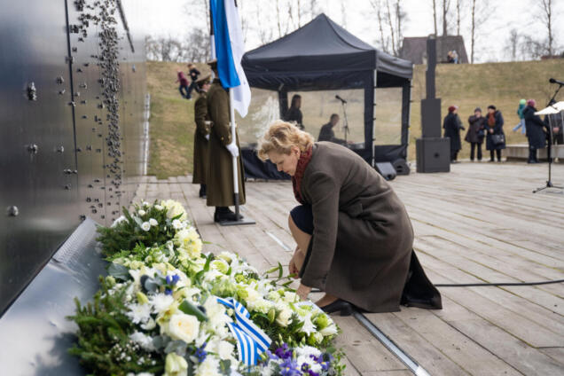 EKRE nimel asetas Riigikogu liige Evelin Poolamets pärja märtsiküüditamise ohvrite mälestuseks Eesti kommunismiohvrite memoriaalil.