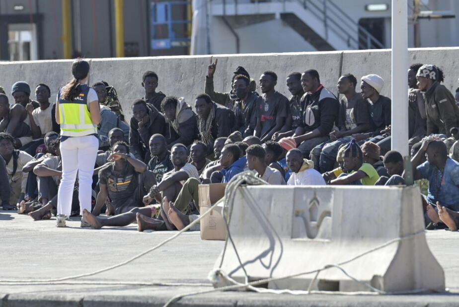 epa12873200 Some of the 169 people who arrived at the port of La Estaca (El Hierro) on a small boat (cayuco) rest on the pier in El Hierro, Canary Islands, Spain, 07 April 2026. EPA/Gelmert Finol