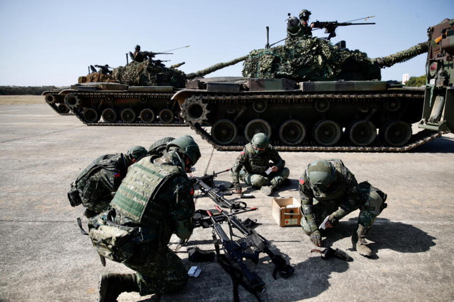 epa08947693 Taiwanese soldiers inspect their rifles during the National Army Lunar New Year’s Military Exercise for Preparedness Enhancement inside a military base in Hsinchu, Taiwan, 19 January 2021. EPA/RITCHIE B. TONGO