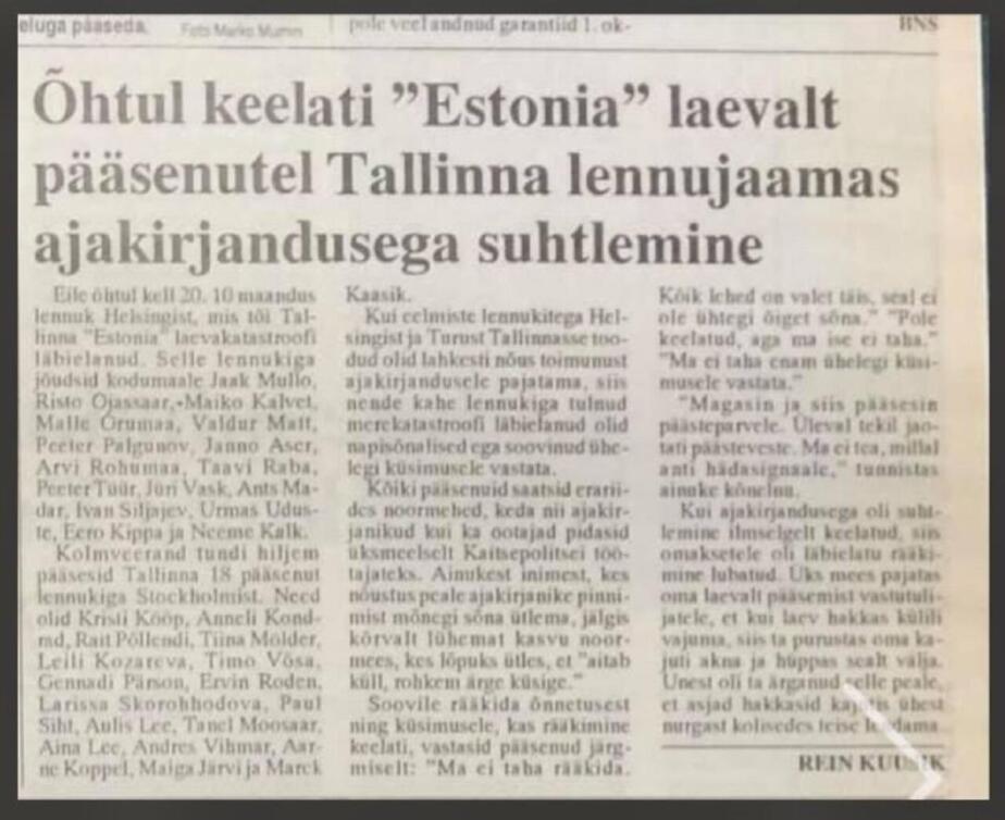 Antud hetkel tuleb nõustuda Margus Kurmiga, kelle hinnangul on Rootsi meile 26 aasta jooksul korduvalt valetanud ja üritanud varjata korralikku uurimist. Siit ka küsimus edasiseks: kui Rootsi üritab uuesti algava uurimise arengut takistada selle nn “hauarahu” sildi all, siis kas me peaksime jätkuvalt laskma end lollitada?