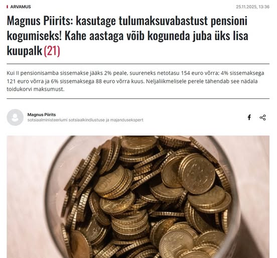 Kolumnist Karl Olaf Rääk käsitleb oma sotsiaalmeediapostituses reklaami teisele pensionisambale “ekspertide” poolt.