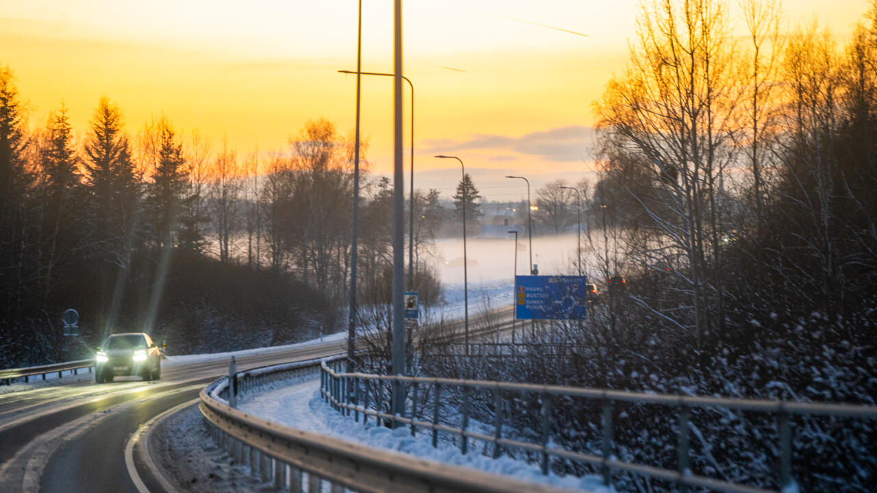 Külm talveõhtu liikluses. Rakvere Sõmeru vaheline tee. Talv, külm, transport, õhtu, liiklus, auto