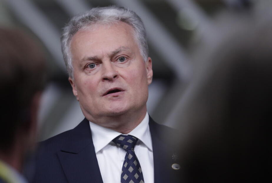 epa09299912 President of Lithuania Gitanas Nauseda at the end of the first day of a European Union leaders meeting in Brussels, Belgium, 24 June 2021. EU leaders meet in Brussels for two days to discuss COVID-19, economic recovery, migration and external relations. EPA/OLIVIER HOSLET / POOL