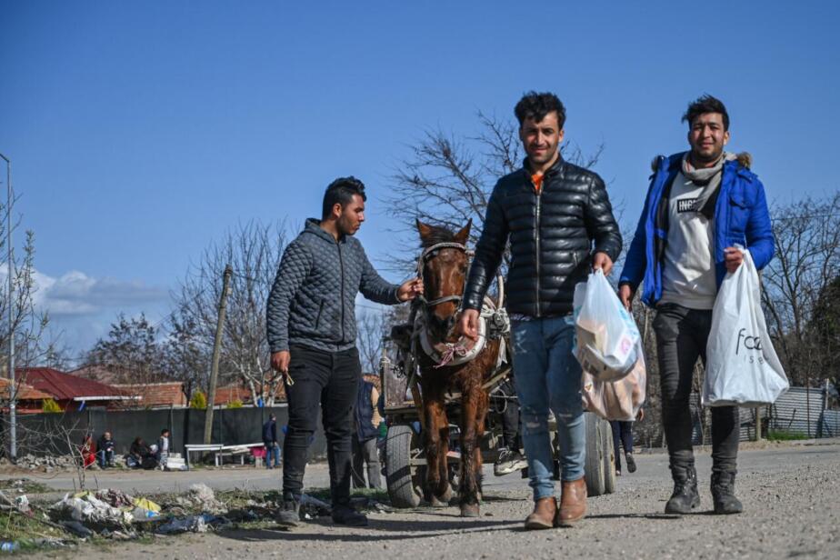 Migrants ride a horse cart on their way to a camp on the Turkish side of the Turkey-Greece border near the Pazarkule crossing gate in Edirne province on March 7, 2020 as makeshift camps have sprung up around the border where thousands of refugees have been encouraged by Turkey to leave for the European Union, in a bid to gain Western backing in Syria. - As part of the 2016 agreement, Turkey agreed to stop the flow of migrants to Europe in exchange for billions of euros, but Ankara accused the European Union of failing to fulfil its pledges. (Photo by Ozan KOSE / AFP)