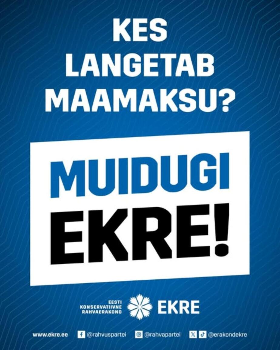 EKRE on kategooriliselt vastu maamaksu tõstmisele! Valides kohalikel valimistel neid, kes hääletasid maamaksu tõstmise poolt, valid maksukoormuse tõstmise poolt tulevikus!