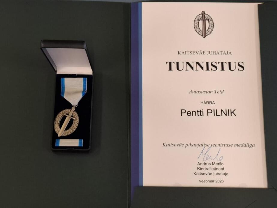 Kaitseväe juhataja Andrus Merilo autasustas EKRE teenekat liiget Pennti Pilnikut kaitseväe pikaajalise teenistuse medaliga. Pentti Pilnik on kauaaegne EKRE liige, endine Jõelähtme vallavolikogu liige.