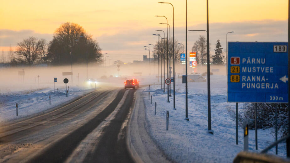 Külm talveõhtu liikluses. Rakvere Sõmeru vaheline tee. Talv, külm, transport, õhtu, liiklus, auto