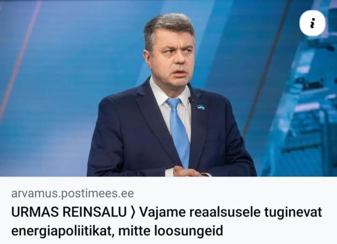 “Lihtsalt selline küsimus tuleb Reinsalule esitada, et kas ta on valmis Brüsselit oma CO2 õhumüügi maksuga kuu peale saatma? Kui hakkab kokutama, siis on selge, et mees räägib vaid loosungeid ja ei plaani tegelikkuses midagi muuta, et Eestis elekter odavaks läheb. Ainult konflikt Brüsseliga võib Eesti energeetika päästa. Niikaua kui Isamaa istub Leyeni EPP fraktsioonis, ei tee Isamaa midagi Eesti päästmiseks. Mune ei ole mehel selleks,” kirjutab poliitikavaatleja Taivo Sepp.