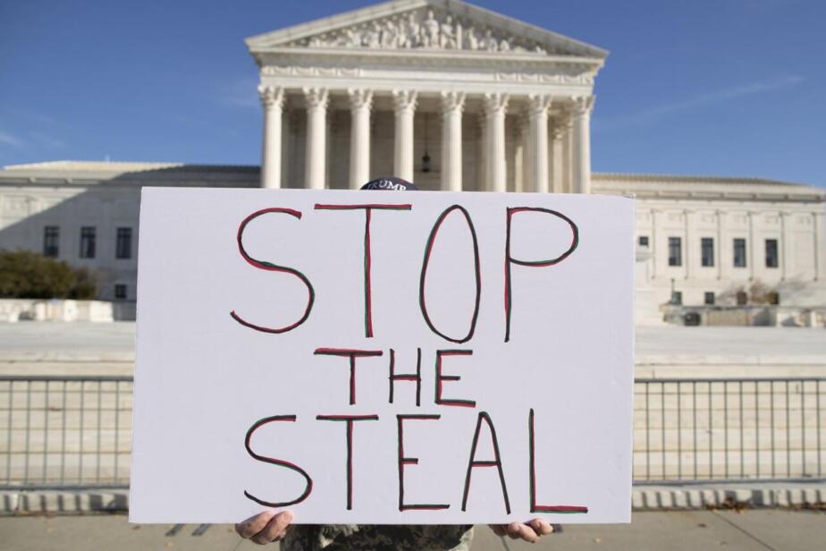 epa08878009 A supporter of US President Donald J. Trump holds a sign outside the Supreme Court in Washington, DC, USA, 11 December 2020. Eighteen US state attorneys general have sided with Texas in attempting to have the Supreme Court invalidate the presidential election results in Georgia, Pennsylvania, Michigan and Wisconsin; and twenty-two Democratic-led states and territories supporting the battleground states. EPA/MICHAEL REYNOLDS